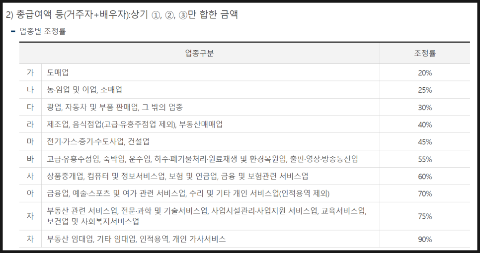 여기에서 인정하는 소득의 종류는 ‘근로(총 급여액), 사업소득, 종교인소득, 이자(배당), 연금, 기타소득’입니다.
